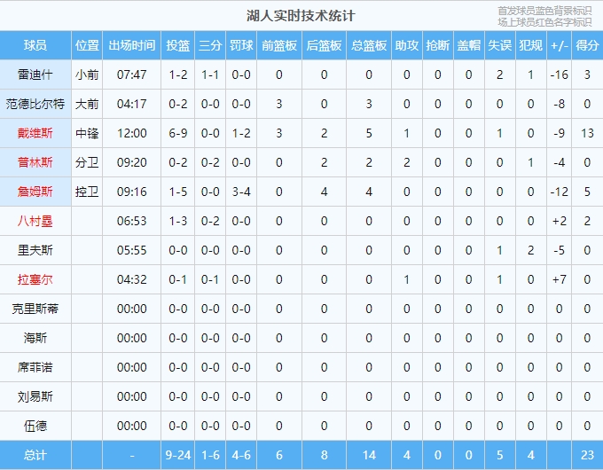 神一场鬼几场定律?湖人首节三分6中1 仅雷迪什命中一个
