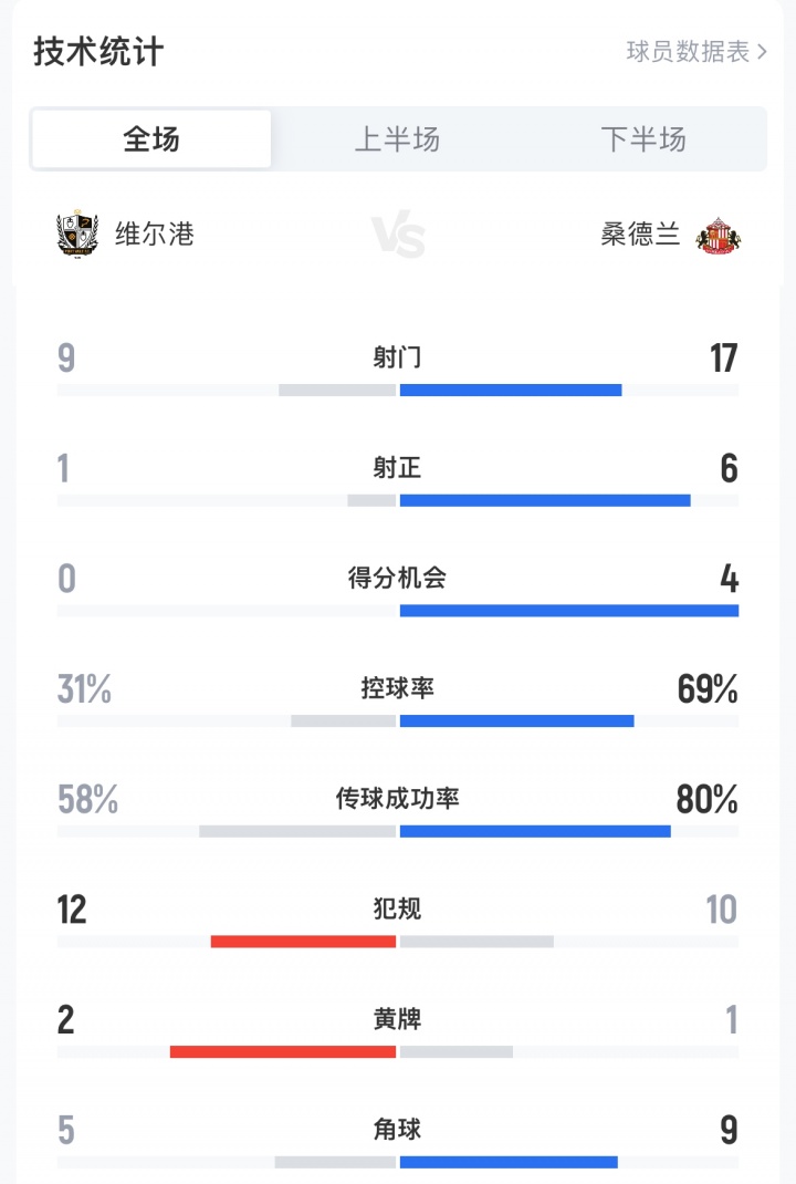 尽管桑德兰全场占据优势,但维尔港在第28分钟抓住机会,通过战术角球配合,由24岁新西兰国脚前锋本·韦恩头球破门,打入全场唯一进球。这也是维尔港此役的唯一一次射正,最终凭借这粒制胜球完成爆冷。