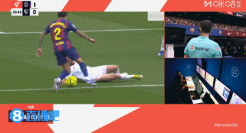 坎塞洛两次造点!第18分钟,坎塞洛禁区内扣球摆脱,卡尔莫纳倒地铲球时有手球,通过VAR,裁判再次判罚点球!↓