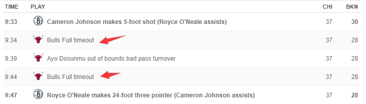 ‍♂️公牛暂停回来道苏姆出现失误 多诺万10秒内喊出第二个暂停