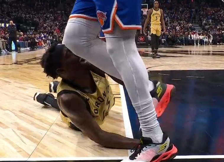 西亚卡姆倒地被走过的兰德尔膝盖击中面部 裁判吹兰德尔普通犯规