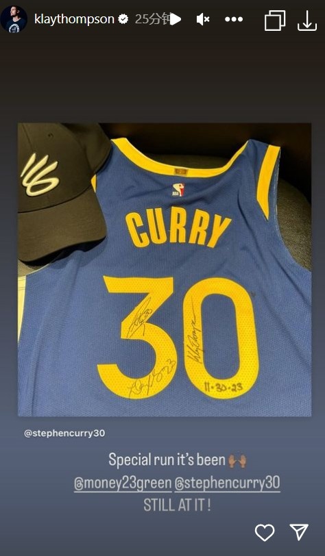 克莱转发水花追签名球衣:多么特别的旅程 让我们继续下去!