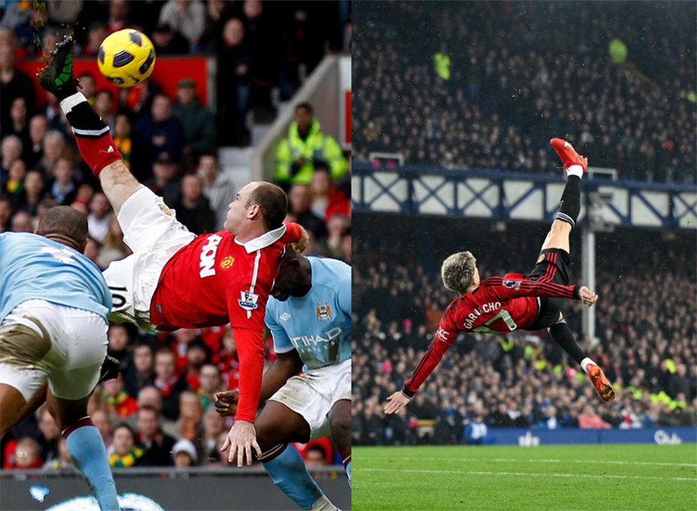 11月27日讯 英超第13轮,曼联客场3-0击败埃弗顿。比赛第3分钟,加纳乔打进一粒逆天倒钩进球。这粒进球也让人们想起了鲁尼在曼市德比中打进的世纪倒钩。赛后,加