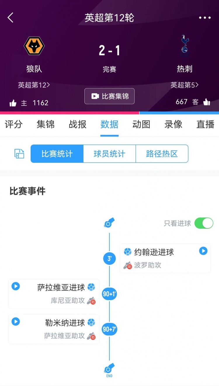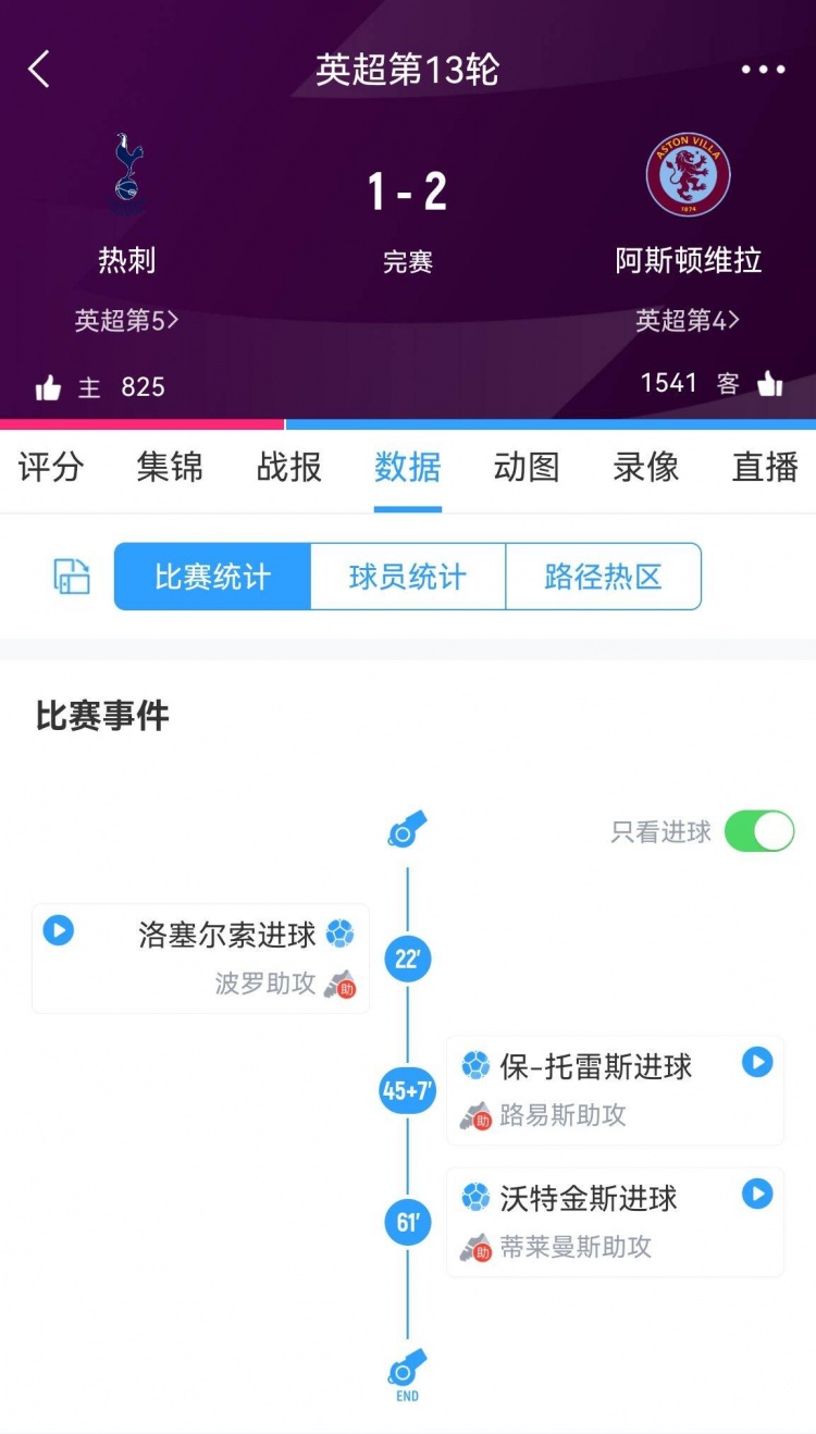 11月27日讯 英超第13轮热刺1-2不敌维拉,遭遇英超3连败。值得一提的是,热刺的三连败均是在先进一球的情况下,最终被对手逆转↓