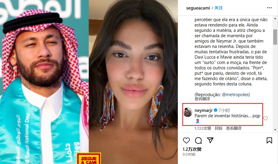 11月28日讯 内马尔今日在巴媒segueacami动态下辟谣了一则关于自己的花边报道。