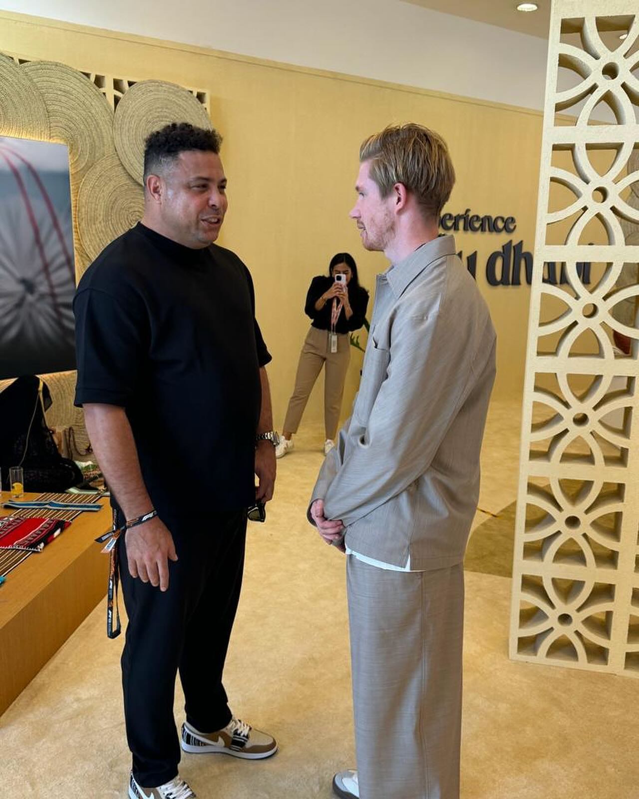 今天,德布劳内在社交媒体晒出与大罗的同框照,两人面对面交谈、并肩合影,德布劳内配文“R9️⃣”。