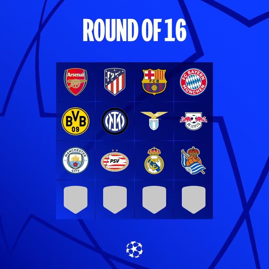 据统计,目前共有4支西甲球队(皇马、巴萨、马竞、皇社)、3支德甲球队(拜仁、多特、莱比锡)、2支英超球队(曼城、阿森纳)、2支意甲球队(国米、拉齐奥)、1支荷甲球队(埃因霍温)已经出线。