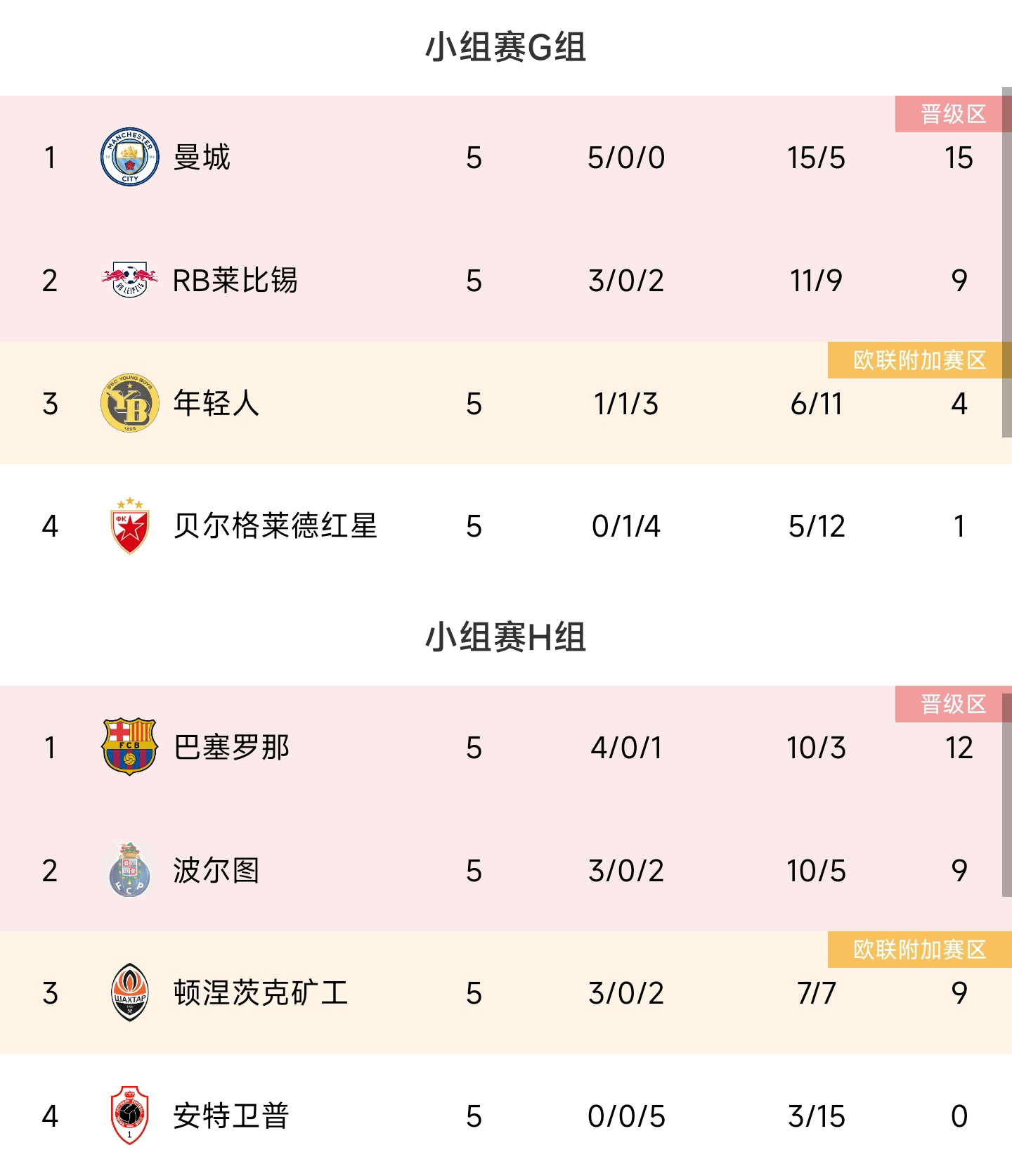 11月30日讯 欧冠小组赛第5轮全部战罢,今日比赛A组加拉塔萨雷3-3曼联、拜仁0-0哥本哈根;B组塞维2-3埃因霍温、阿森纳6-0朗斯,C组皇马4-2那不勒斯、布拉加1-1柏
