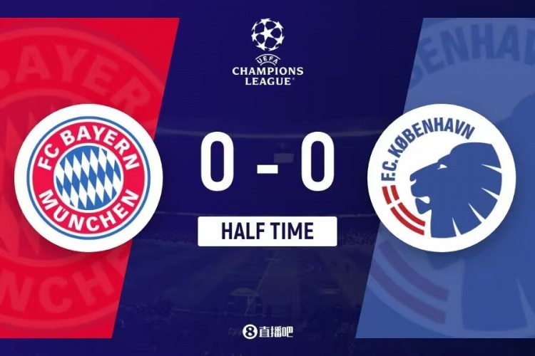上半场没有补时,拜仁0-0哥本哈根。