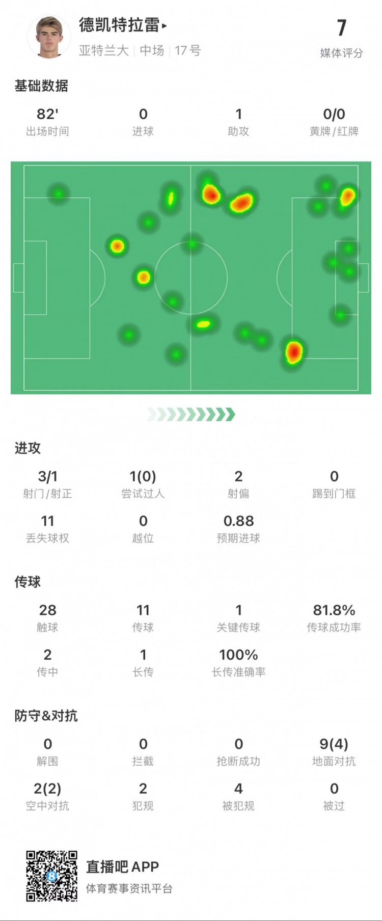 德凯特拉雷本场比赛数据: