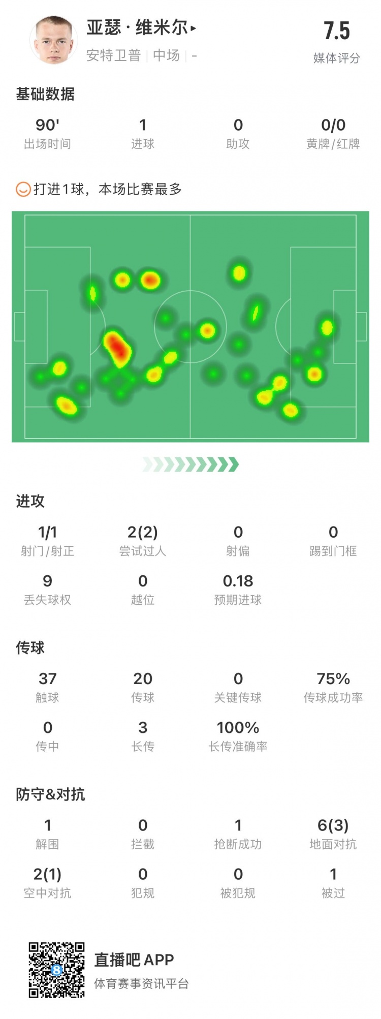 面对巴萨打进1球&评分7.5分!安特卫普中场维米尔当选全场最佳