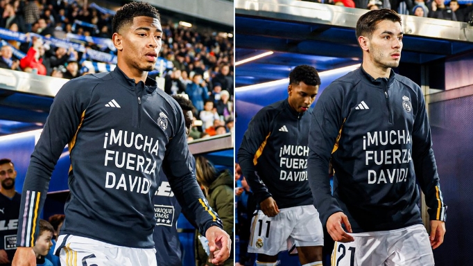 这件训练服上印着鼓励阿拉巴的标语:“给你很多力量,大卫!”皇马官方也表示:“我们和你同在