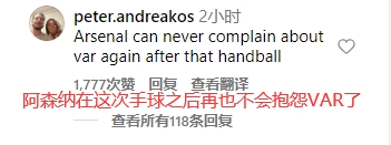 英超第18轮,利物浦主场1-1战平阿森纳,本场比赛厄德高有一次禁区内的明显手球,但裁判没有判罚。赛后在英超的官方社媒下,球迷们也对这次判罚发表了看法。