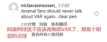 赛后在英超的官方社媒下,球迷们也对这次判罚发表了看法。
