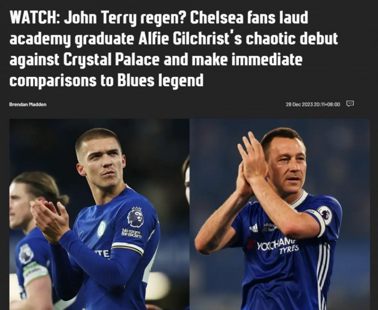 12月29日讯 英超第19轮,切尔西2-1战胜水晶宫,20岁的青训小将吉尔克里斯特替补上演英超首秀,他的表现得到了蓝军传奇队长特里的肯定。