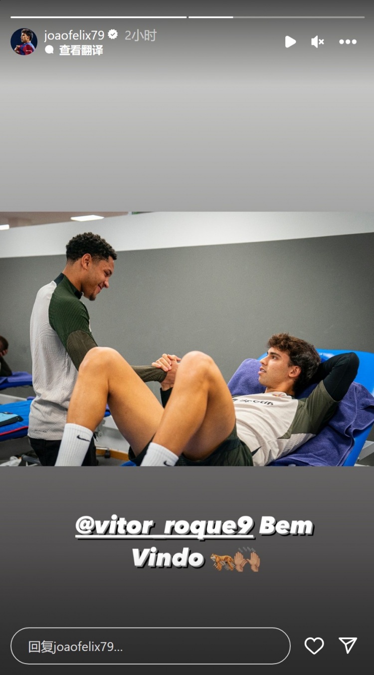 12月30日讯 巴西18岁前锋罗克正式加盟巴萨,队友菲利克斯社媒对他表示欢迎。