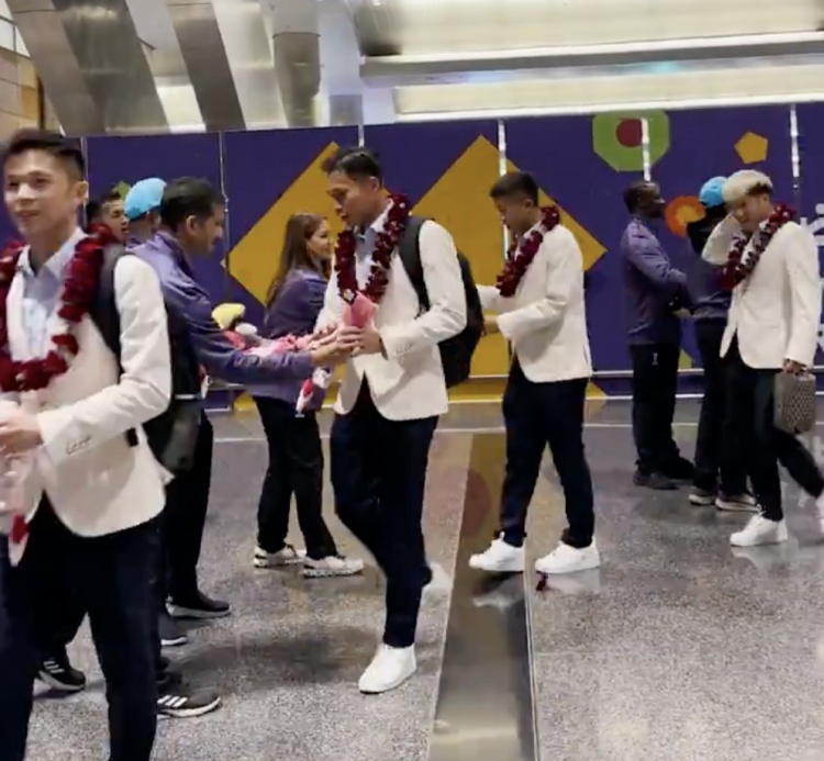 抵达多哈后,中国香港队一行在机场受到了组委会安排的工作人员的热情欢迎。