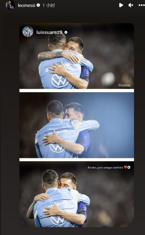 老友重逢!苏牙晒与梅西相拥照:是对手,也是朋友❤️⚽