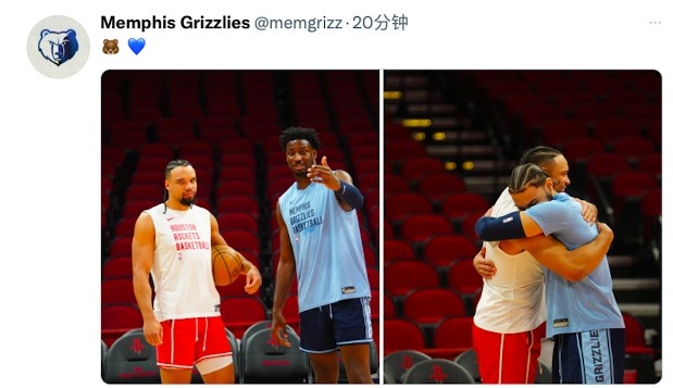 11月23日讯 上午9点,火箭将迎战灰熊,本场狄龙将战旧主。赛前,灰熊官方晒出了狄龙和灰熊球员的寒暄、拥抱照,写道:“