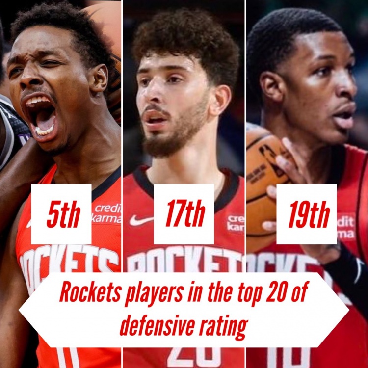 防守为先!火箭三人进入防守效率榜前20 泰特&申京&小史密斯