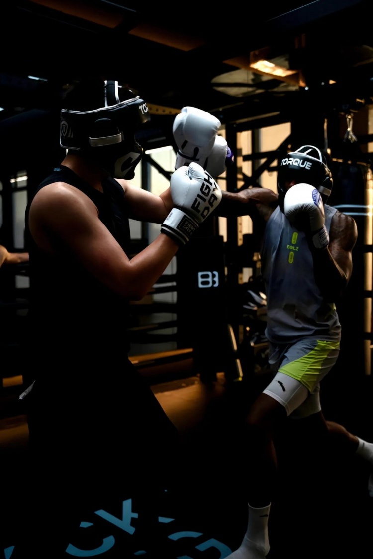 11月25日讯 今日,前广东球员,目前效力于超三上海上实的王薪凯更新社媒,晒出了与威姆斯比拼拳技的图片。