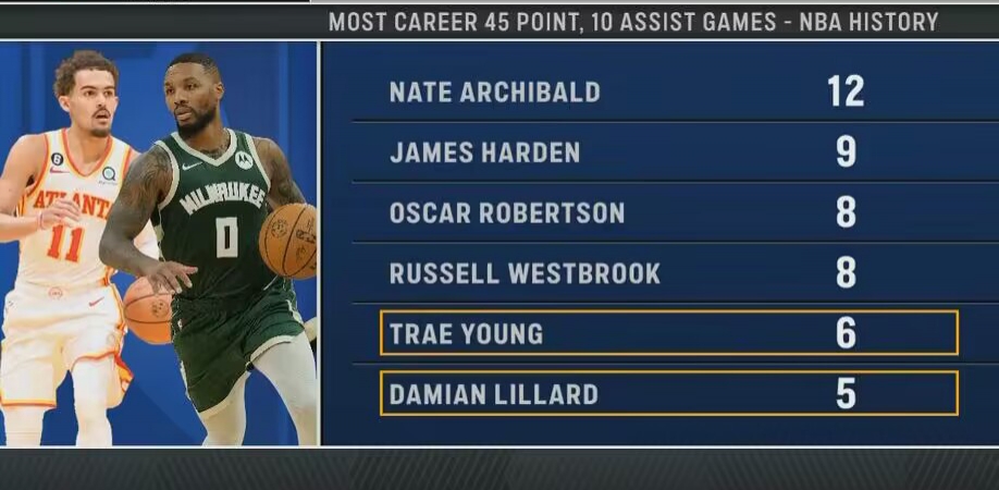 历史单场45分10助榜:登威现役前二 特雷-杨力压利拉德