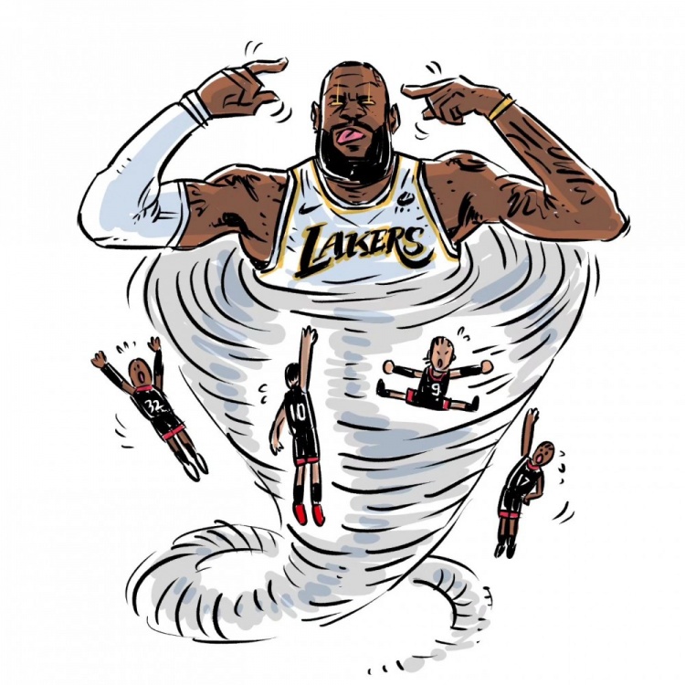 转起来!漫画家晒詹姆斯360度上篮动漫图 庆祝动作威武霸气
