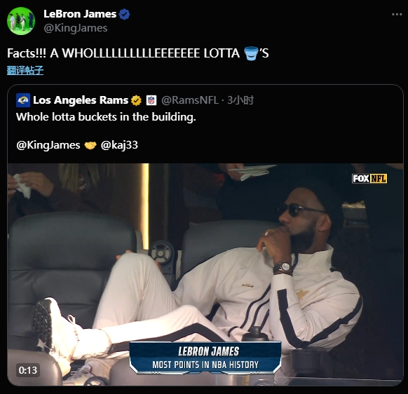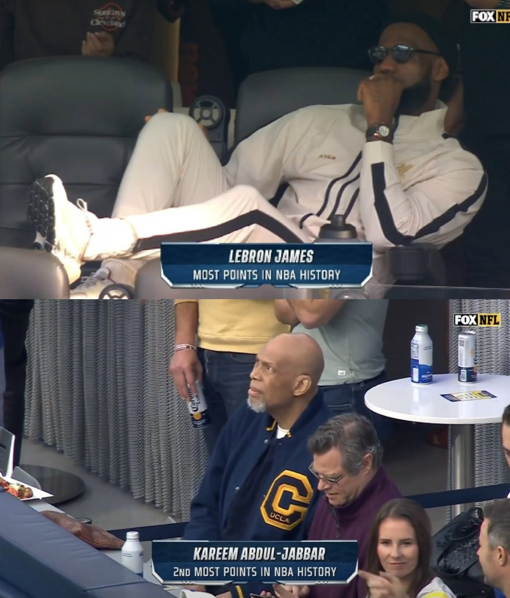一张图77527分!詹姆斯转发自己与贾巴尔同在公羊主场观看NFL比赛