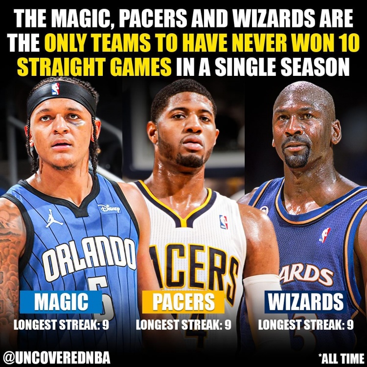 魔术9连胜遭终结!三队单赛季从未拿过10连胜:魔术 步行者 奇才