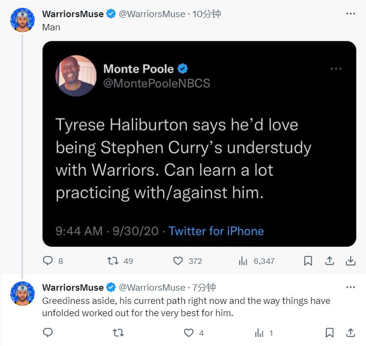 不过勇士媒体也很清醒:虽然对哈利伯顿很“贪婪”,但他现在的道路和发展对他而言才是最好的!