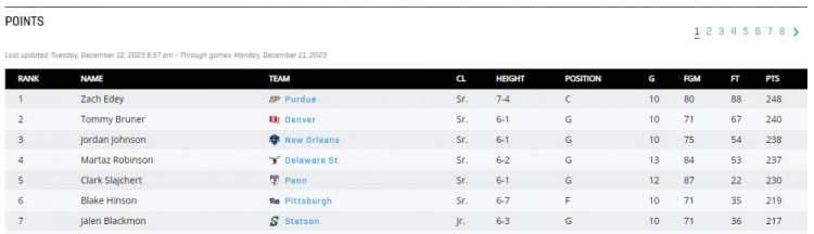 12月13日讯 加拿大籍华裔中锋扎克-埃迪目前在征战NCAA一级联赛,效力于普渡大学。目前扎克-埃迪出战10场比赛,共砍下248分,场均24.8分,总得分和场均得分都跃居