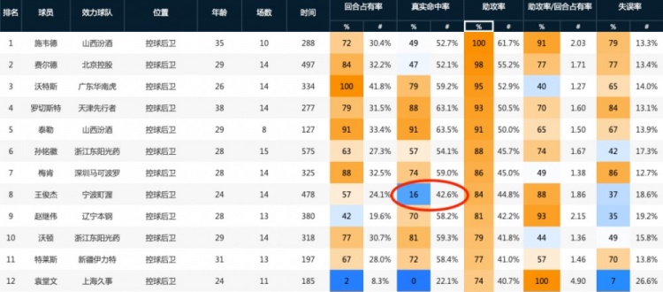 这还真是一个让王俊杰尴尬的数据,不是擅长推快攻吗,不是出球速度快么?不是全队跑节奏发挥你的优势吗?怎么全队得分效率这么低?