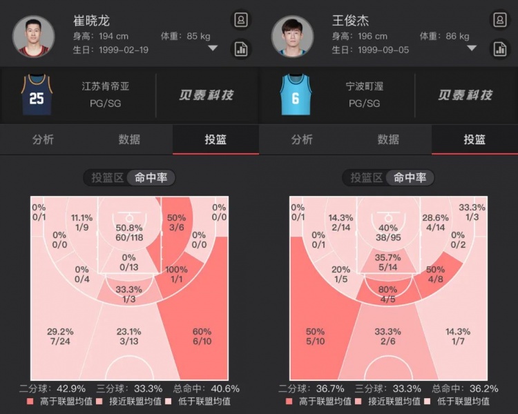 关于这点,我们这里还有一个经典案例,在本赛季王俊杰缺席的那场比赛(对阵广东),宁波队全体三分命中率只有28.6%。和王俊杰强绑定的宁鸿宇在三分线外只有6投1中,罗凯文也仅仅只有6投2中的效率。