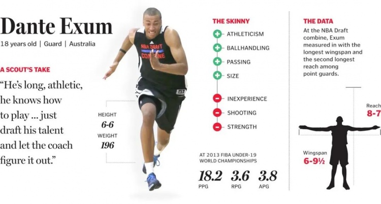 艾克萨姆当年的球探报告——优点:运动能力、控球、传球、尺寸;缺点:经验、投射、力量