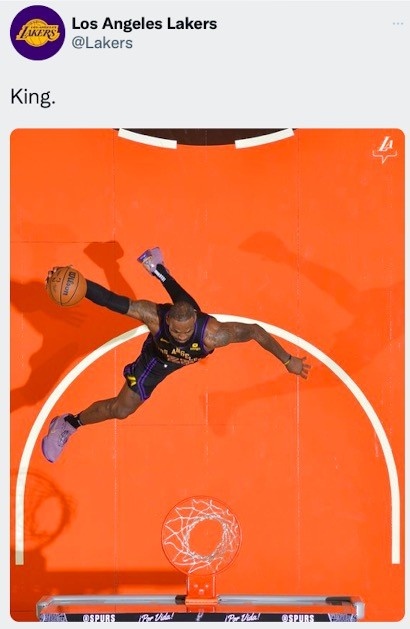 詹姆斯快攻招牌单臂战斧飞扣!湖人官方晒图:国王