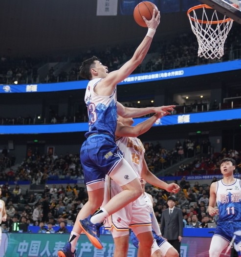 作为新疆队腿脚最慢的人,但却从最后一名不断反超队友跟进到前场,找到防守中一条无人防守的路线,完成反击上篮