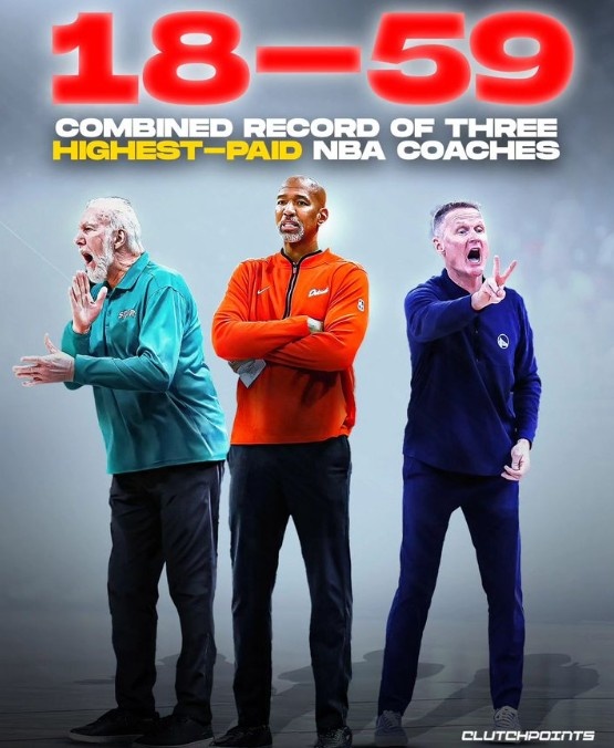 NBA本赛季最贵的三位教练波波蒙蒂科尔合计带队18胜59负