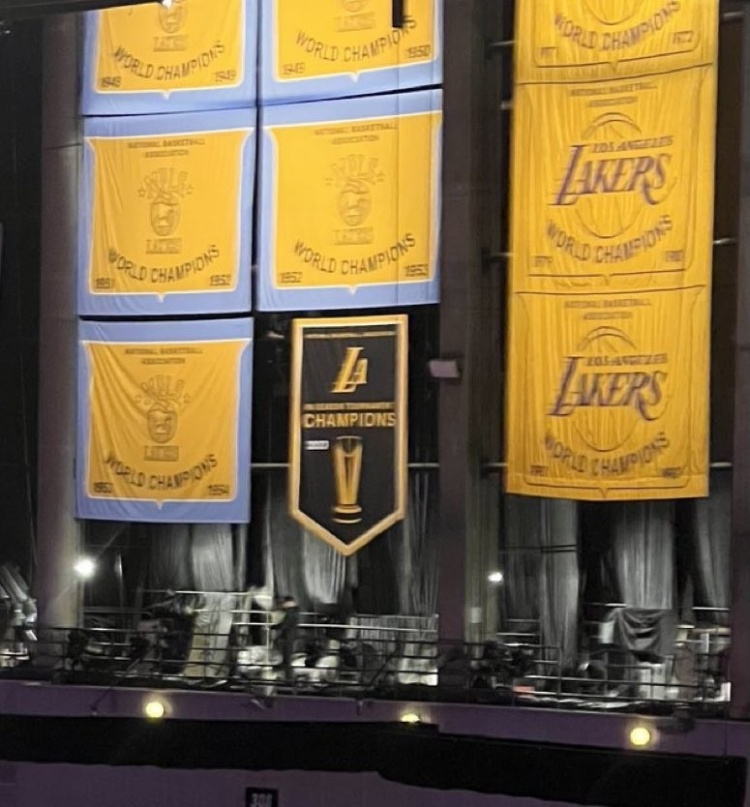 湖人将在今天主场对阵尼克斯比赛中,在主场球馆升起NBA季中锦标赛冠军旗帜,以纪念球队获得的历史首届季中赛冠军。洛杉矶记者Dime Dropper晒出疑似湖人季中锦