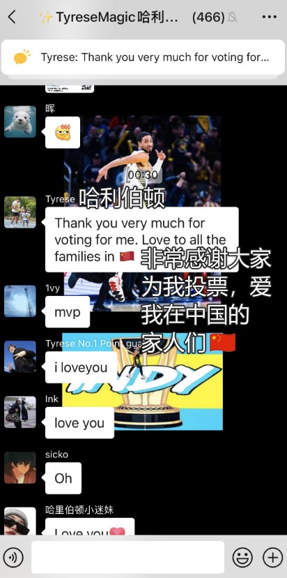 不客气!哈利伯顿在微信粉丝群感谢大家为他投全明星票