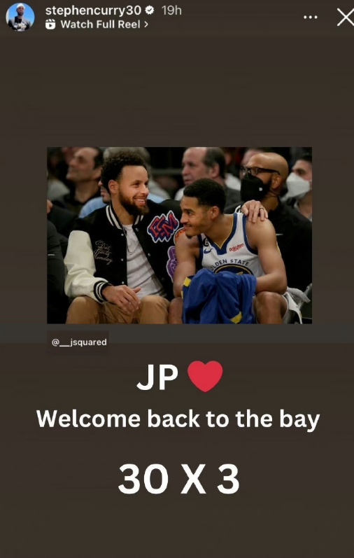 阿水和阿茶!库里欢迎普尔重回金州:JP❤欢迎回到湾区 30X3
