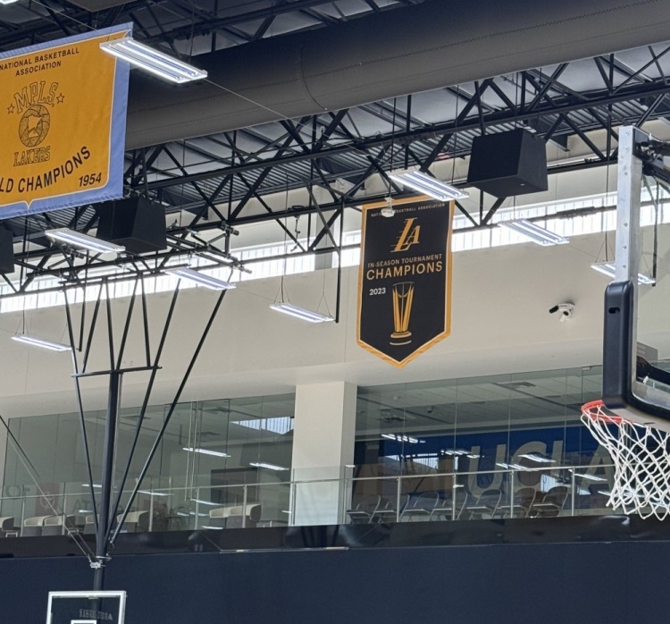 荣誉的象征!队记:湖人训练场已升起季中锦标赛冠军旗