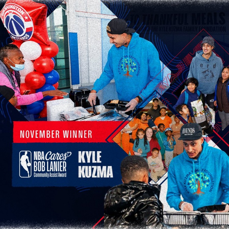 NBA官方:库兹马获得11月份社区关怀援助奖