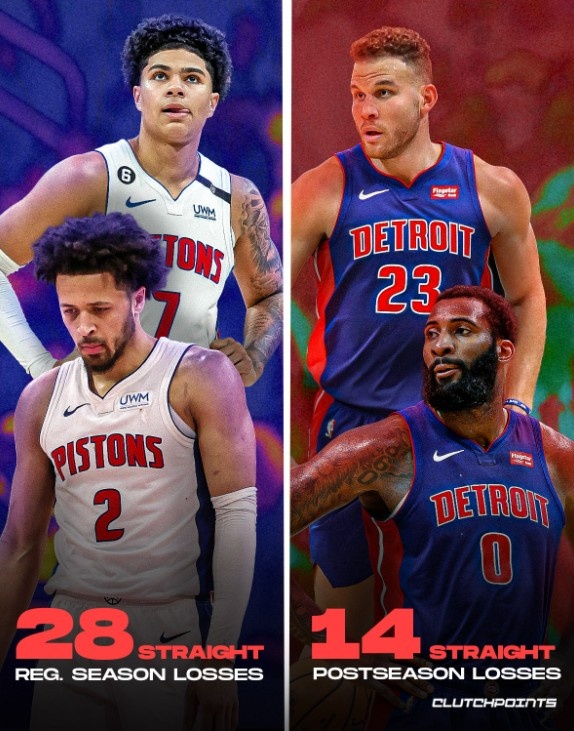 活塞目前常规赛28连败历史最长 季后赛14连败也为历史最长!
