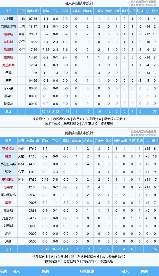 老六疯断湖人全队!鹈鹕众将手感爆棚 湖人半场落后17分