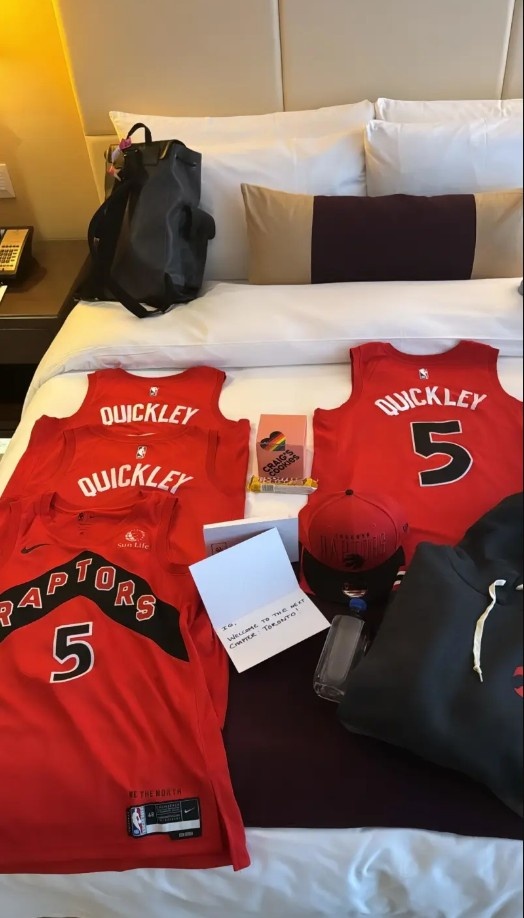 1月2日讯 猛龙新援奎克利今日在个人INS晒出了新球衣与新装备。