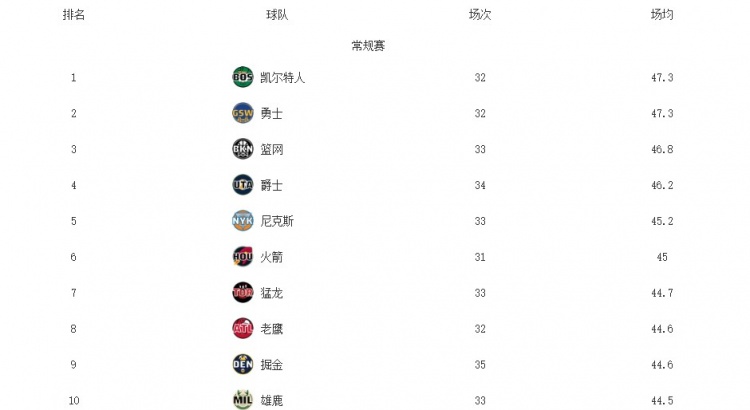 据统计,本赛季至今,勇士场均可以抢下47.3个篮板,与凯尔特人并列联盟第一!