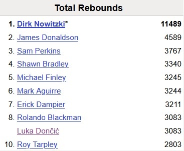 里程碑!东契奇生涯篮板数超罗兰多-布莱克曼 排名独行侠队史第8
