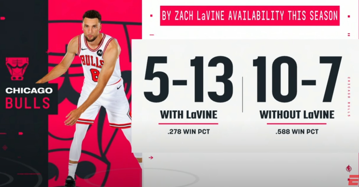 真的尴尬!公牛本赛季有无拉文战绩对比:在场5-13 不在场10-7