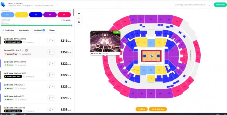 1月7日讯 明日上午10点30分,湖人将主场迎战快船。据美国票务网站TickPick显示,洛城德比的人气一如既往爆棚,该场比赛的场边票已全部售罄。目前最低票价为159
