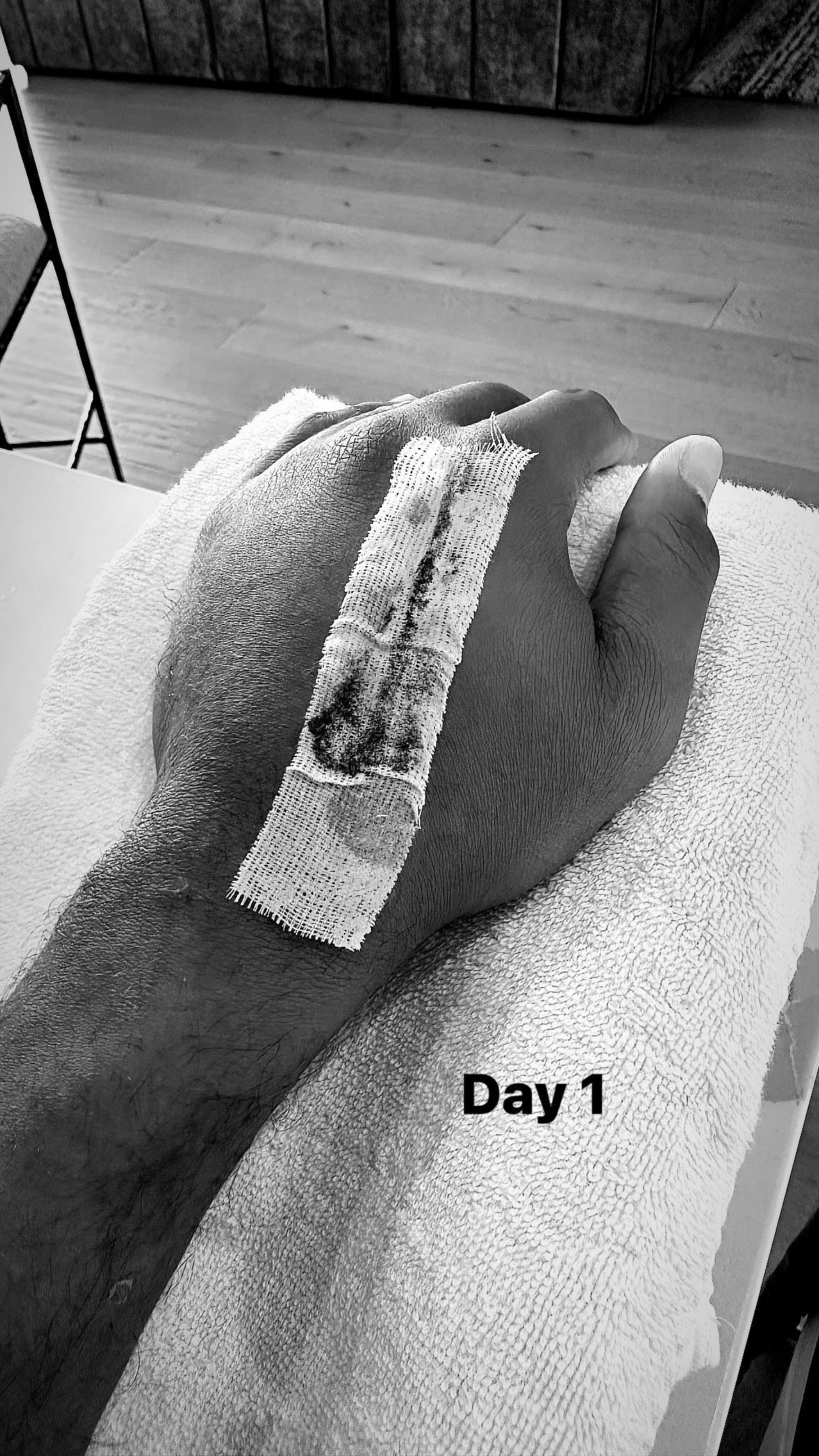 今日,保罗更新个人社交媒体,晒出自己的左手照,并配文道:“第一天。”